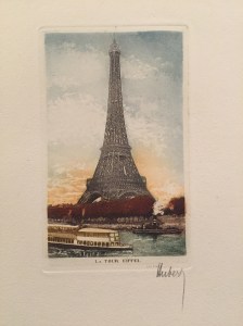 I am also equally challenged in my split loyalty to Hubert and Léon Salles. Although they are one and the same person, I am having a bit of separation anxiety concerning Hubert. Now that Hubert has been identified as Léon Salles my efforts have been focused on obtaining information about Salles’ life and work. The works signed Salles are appreciably more complex than those etchings he signed as his alter-ego, “Hubert”, which generally depict well-known sites in France and Belgium and are often referred to as “souvenir etchings.” The two recent acquisitions pictured above illustrate the contrasting works. Despite the fact that Salles’ art is considered more serious, the sentimentality of Hubert’s art is touching yet in a different way. From the French word meaning “to remember”, souvenir etchings serve to preserve a memory by commemorating it on paper. Hubert’s affection for his country is evident and he communicates this through his art. Hubert’s etchings capture the essence and beauty of France as well as the vibrancy of its people. If the purpose of art is to make you feel something, then let it be said – Hubert’s art makes me feel happy! Perhaps because of this and because Hubert has been such a significant presence in my life for so many years, I am having difficulty letting go of him and accepting Léon. As with la langue française, Hubert will always remain my first love…
