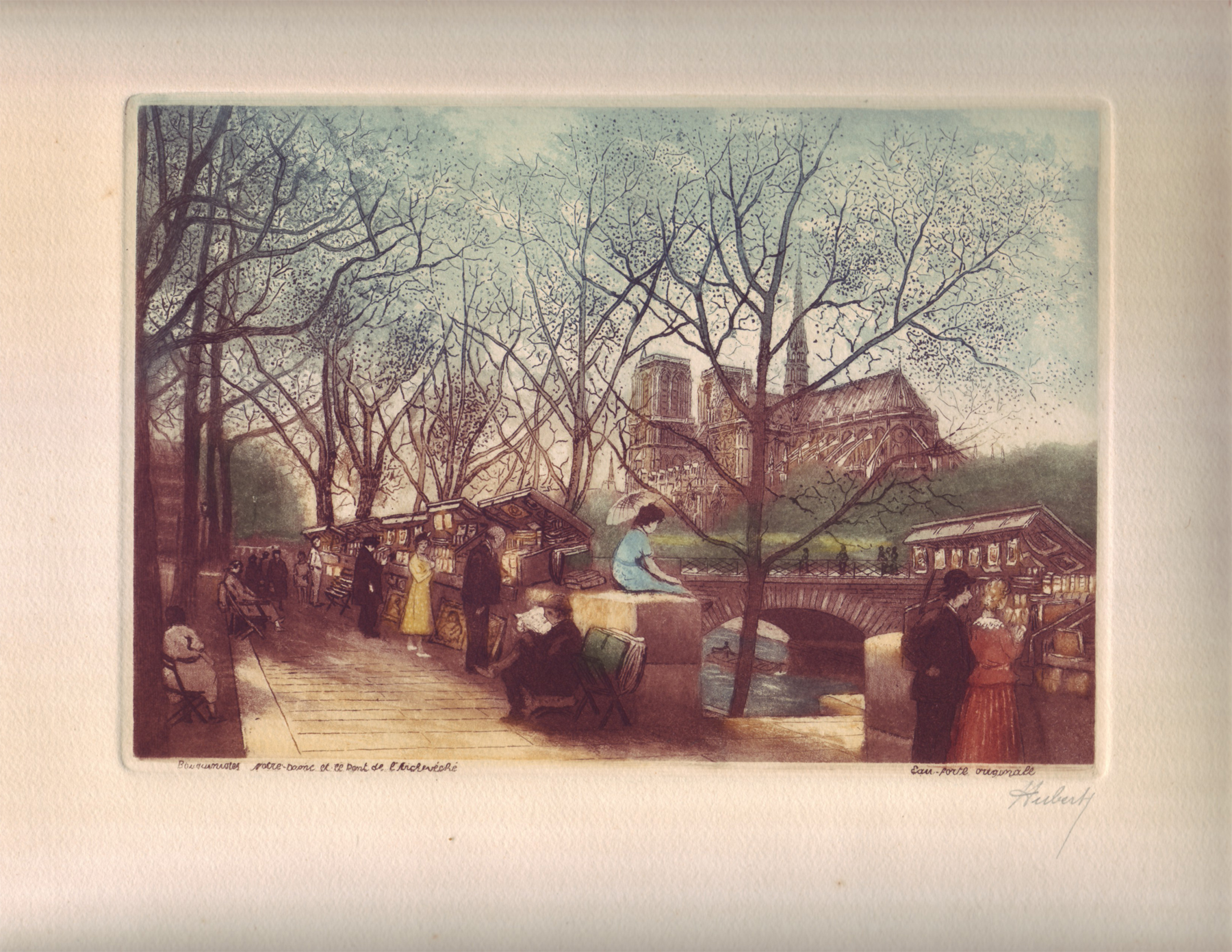 My search for the enigmatic artist “Hubert” began over 30 years ago in the 1980s after I serendipitously discovered his beautiful etching titled “Bouquinistes Notre-Dame et il pont de l’Ardeche” hidden beneath a mirror in my garage. Deeply moved by his work I began my quest to discover the identity of this unknown but very gifted artist. With no clue other than his signature I began a blog titled Chasing Hubert in the hope that somewhere out in cyberspace someone might have information leading to a positive identity. My journey has led me along many diverse roads and different paths of exploration and along the way has brought insight into not only the world of art but of life itself. In the spring of 2018 Hubert was identified as the artist Léon Salles. Rather than the chase ending there instead a new journey has begun – that of bringing Léon Salles into the light….
